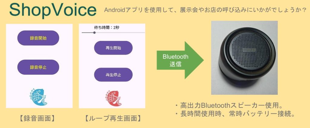 アプリで声を録音しBluetoothスピーカーで録音した声を連続再生するアプリです。